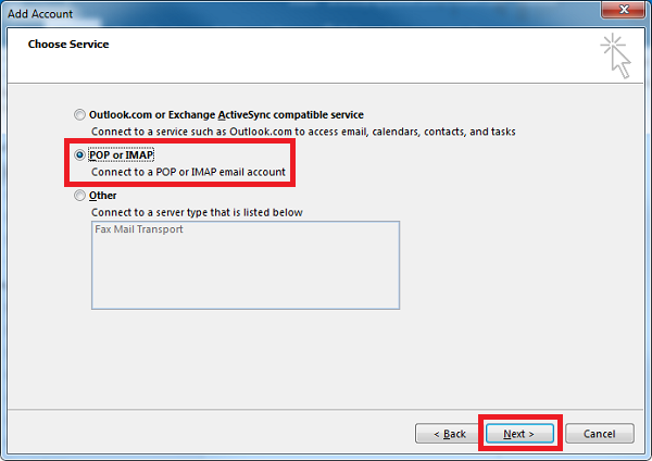 4.Select ‘POP or IMAP’ and click ‘Next’.